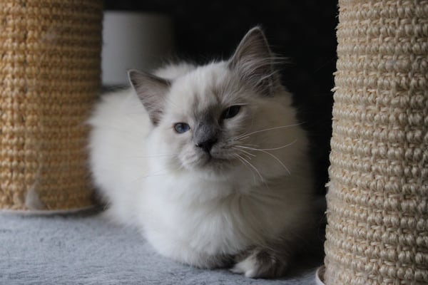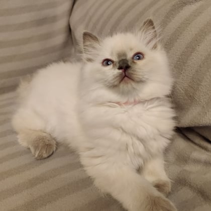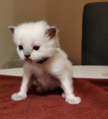 Jinx har fått brunt halsband, hon slarvade bort sitt lila.